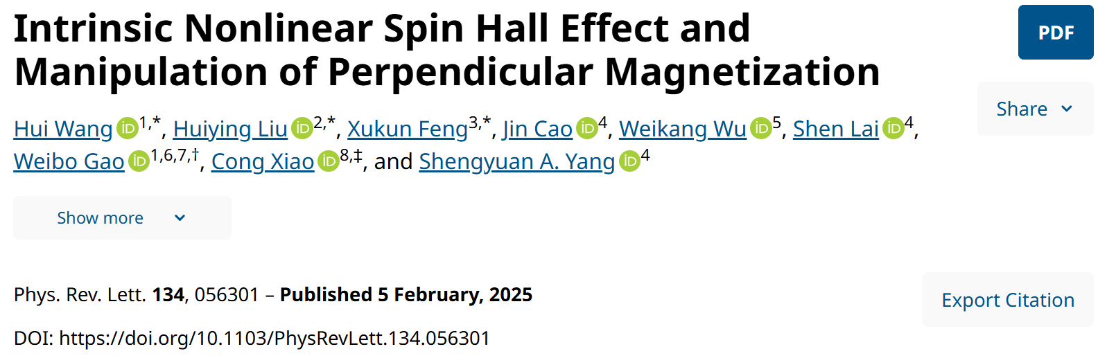 近日,73882必赢欢迎光临量子磁性和拓扑物理研究方向刘慧颖副教授课题组及其合作者在《Physical Review Letters》上发表了题为“Intrinsic nonlinear spin hall effect and manipulation of perpendicular magnetization”的论文。非线性输运效应提供了探测新的能带几何性质的手段,为材料表征和器件设计提供了新工具,具有广阔的应用前景。其中本征效应仅由能带结构决定,代表了材料的固有属性, 例如本征非线性霍尔效应...