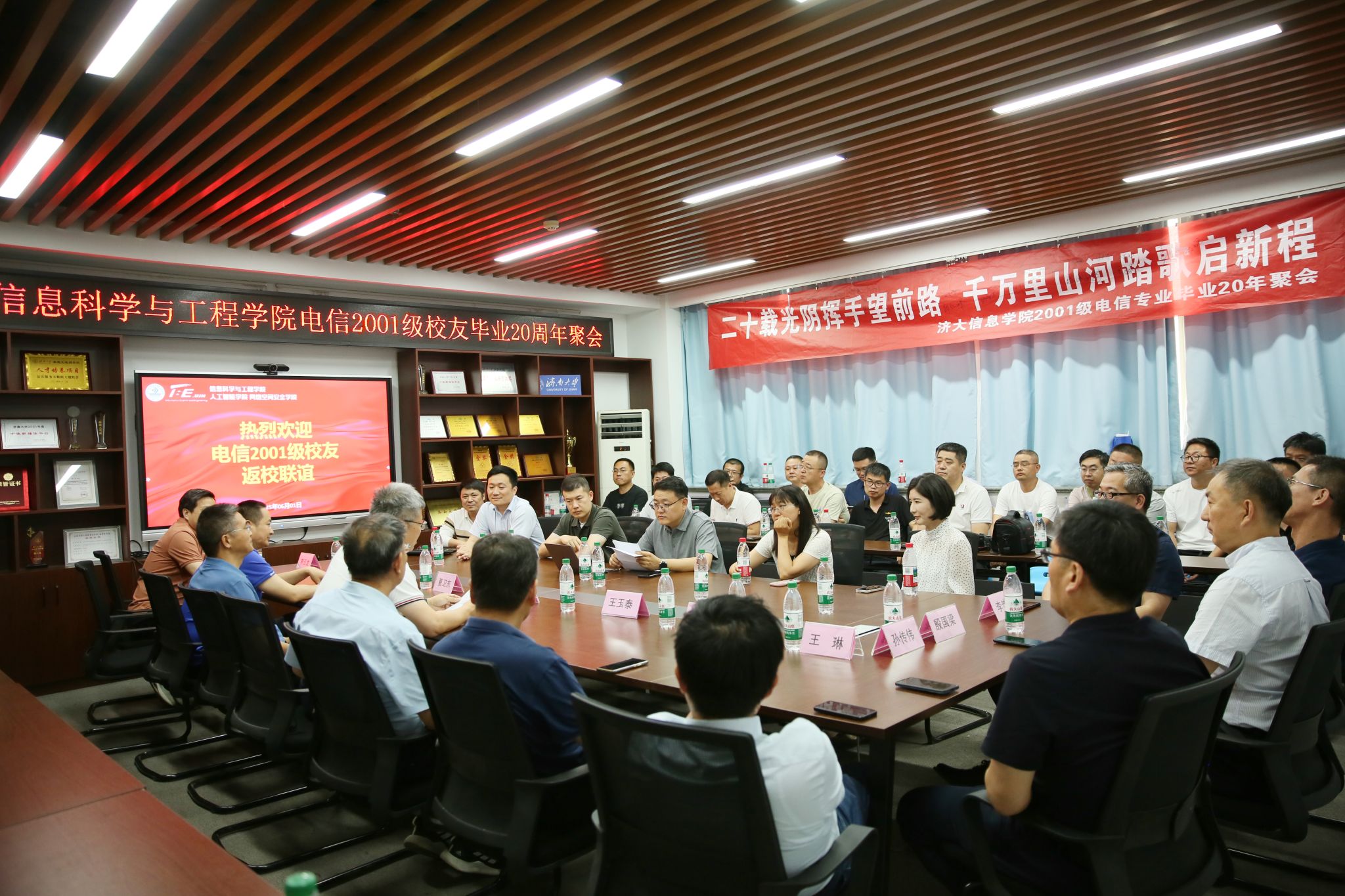 6月1日,beat365vip官网登录入口迎来了一场温馨而热烈的聚会,电信2001级近三十名校友重返母校,与昔日师长、同窗重聚,共同回忆青春岁月,畅叙深厚情谊。合作发展处处长、校友工作办公室主任刘振,beat365vip官网登录入口党委书记夏卫东,院长王琳以及部分教师代表参加活动。