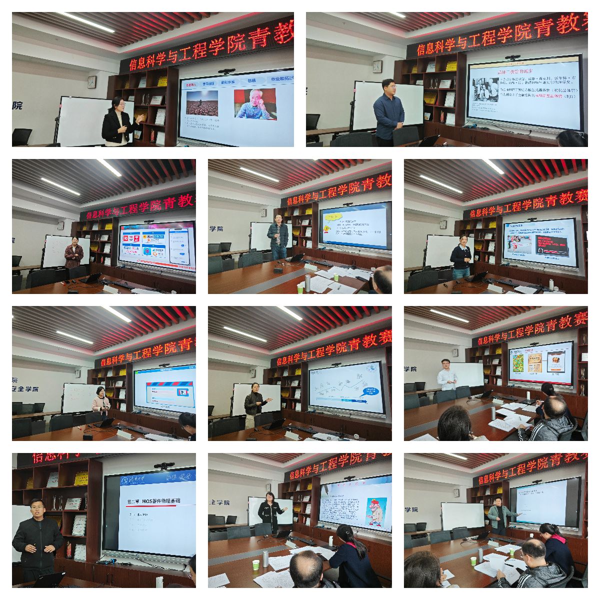 分组选拔赛于10月16日下午举行。27位青年教师分成4个组,分别在703、704、709及719会议室同时进行。学院邀请曾获省青教赛二等奖、教学名师、优秀教学奖、青年教学能手等荣誉的教师参与评审,并组织部分青年教师现场观摩。参赛教师依次进行现场教学演示,经过一下午的激烈角逐,共推荐11名教师晋级校赛遴选赛。