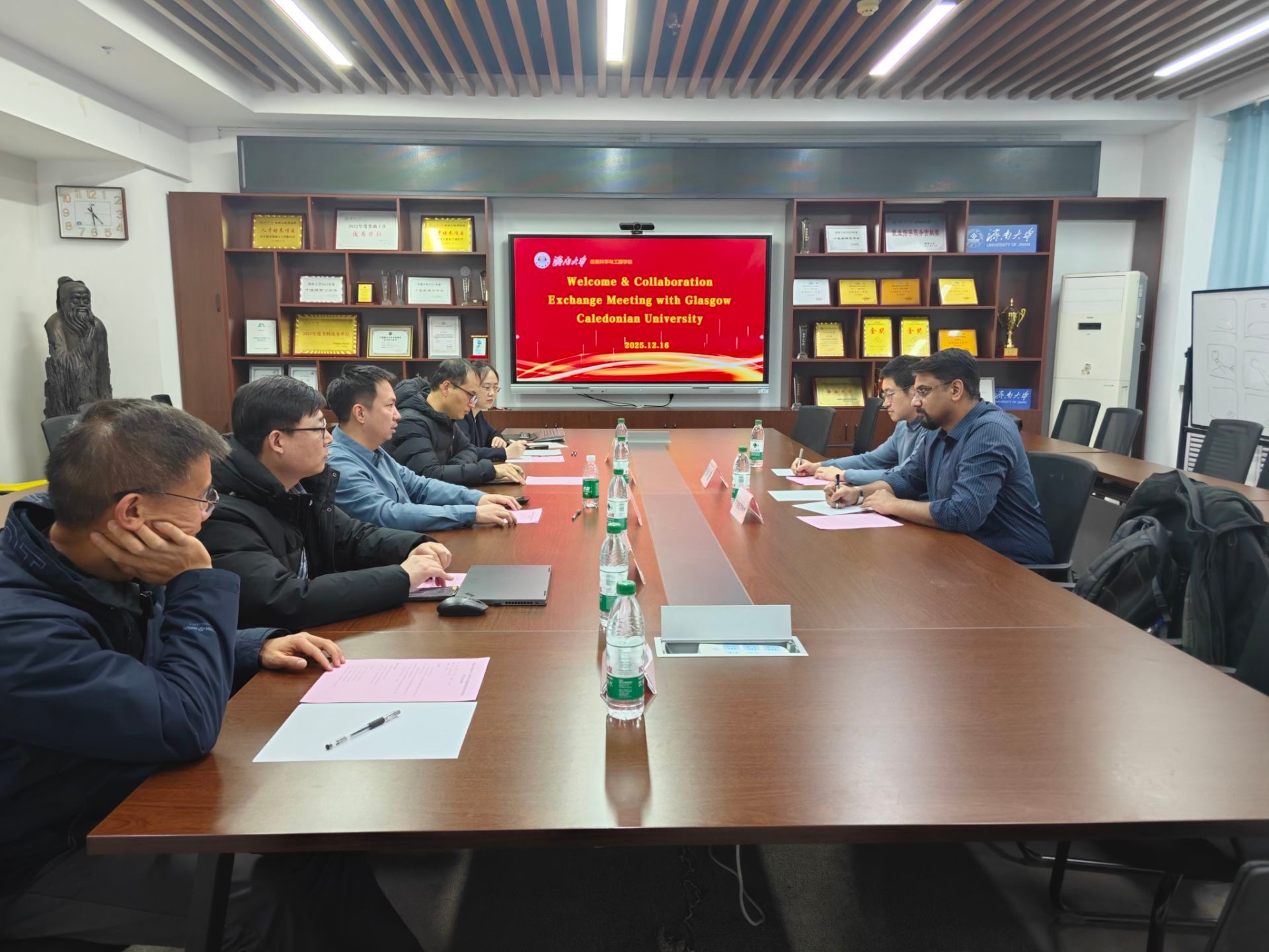 王琳代表学院就Anand Philip教授及其团队对学院人才培养的支持表示感谢,并介绍了学院在专业建设、师资队伍、科学研究和人才培养等方面的基本情况。Anand Philip对此次交流机会表示感谢,并介绍了格拉斯哥加利多尼亚大学科学与工程学院的整体发展情况及学科特色。