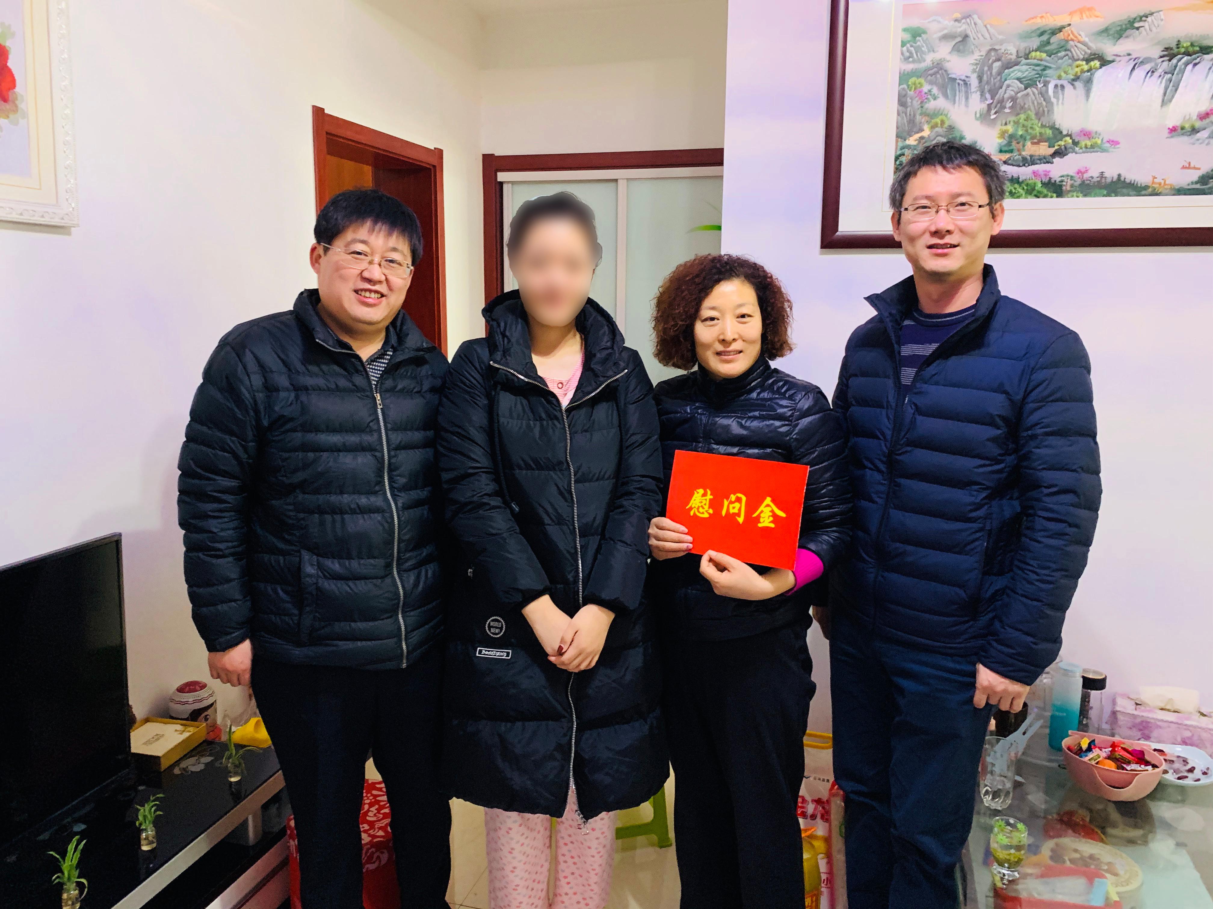 收拾心情之后,老师们去到了小翟同学家中,将学院精心准备的慰问品和祝福送到困难学生家中。小翟同学的父亲患有高血压,前几年突发脑梗,已不能从事体力劳动。小翟的姐姐前几日不慎摔伤,情况严重,母亲一直在家照顾,这也让本来就困难的家庭雪上加霜。“家庭的困难没有让我丧失对生活的信心,学校和学院一直以来的帮扶使我重燃希望,我一定努力学习专业知识,不畏艰难,用知识改变命运、武装思想,勇攀人生高峰。”当听到小翟发自内心的感动时,老师和他的家人们深受欣慰,相信在小翟的努力下,他的家庭定会越来越幸福,家庭状况也一定会越来越好。