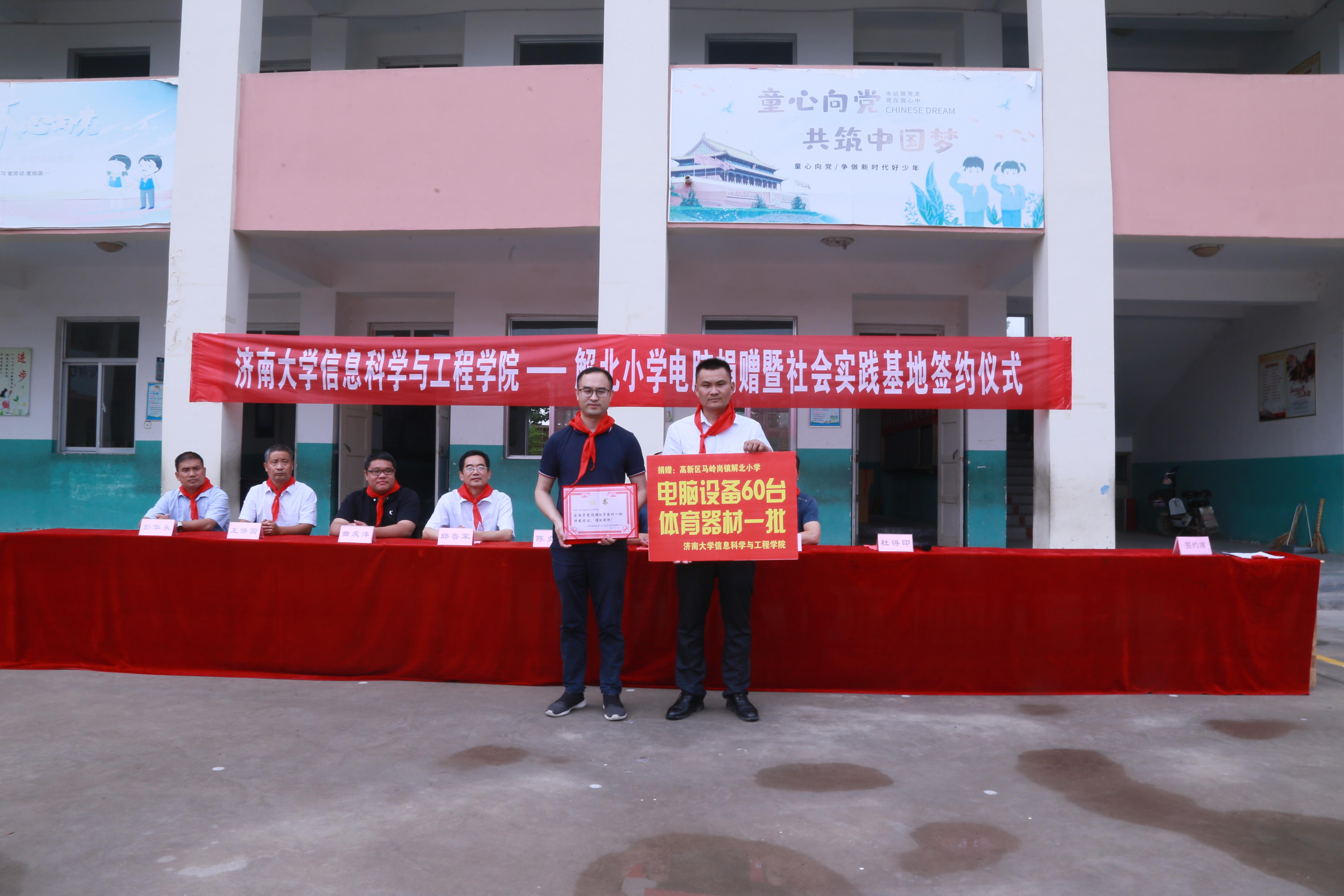 7月18日,beat365vip官网登录入口与菏泽高新区马岭岗镇解北小学举行电脑捐赠暨社会实践基地签约仪式,学院党委书记邱鲁军、院长陈贞翔、菏泽市高新区马岭岗镇中心校和解北行政村党支部等有关负责人出席仪式。