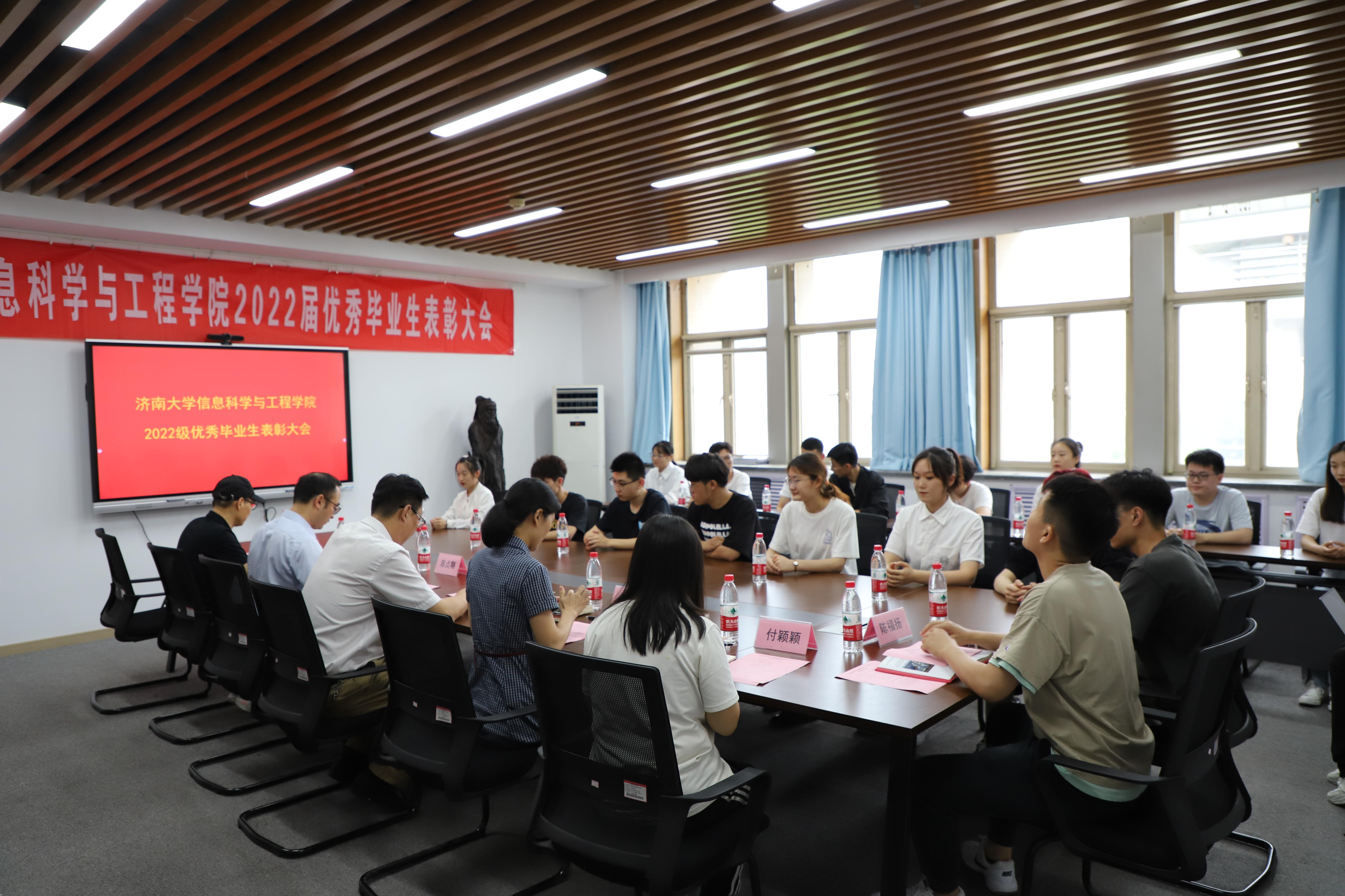 为做好2022届优秀毕业生的表彰工作,树立典型,表彰先进,进一步促进良好院风、学风建设,引导毕业生坚定理想信念,扣好步入社会的第一粒扣子,6月10日上午,beat365vip官网登录入口召开2022届优秀毕业生表彰大会。学院党委书记李超、院长陈贞翔、副院长荆山、全体学工人员以及2022届优秀毕业生代表参加会议。会议由党委副书记、副院长董晓慧主持会议。