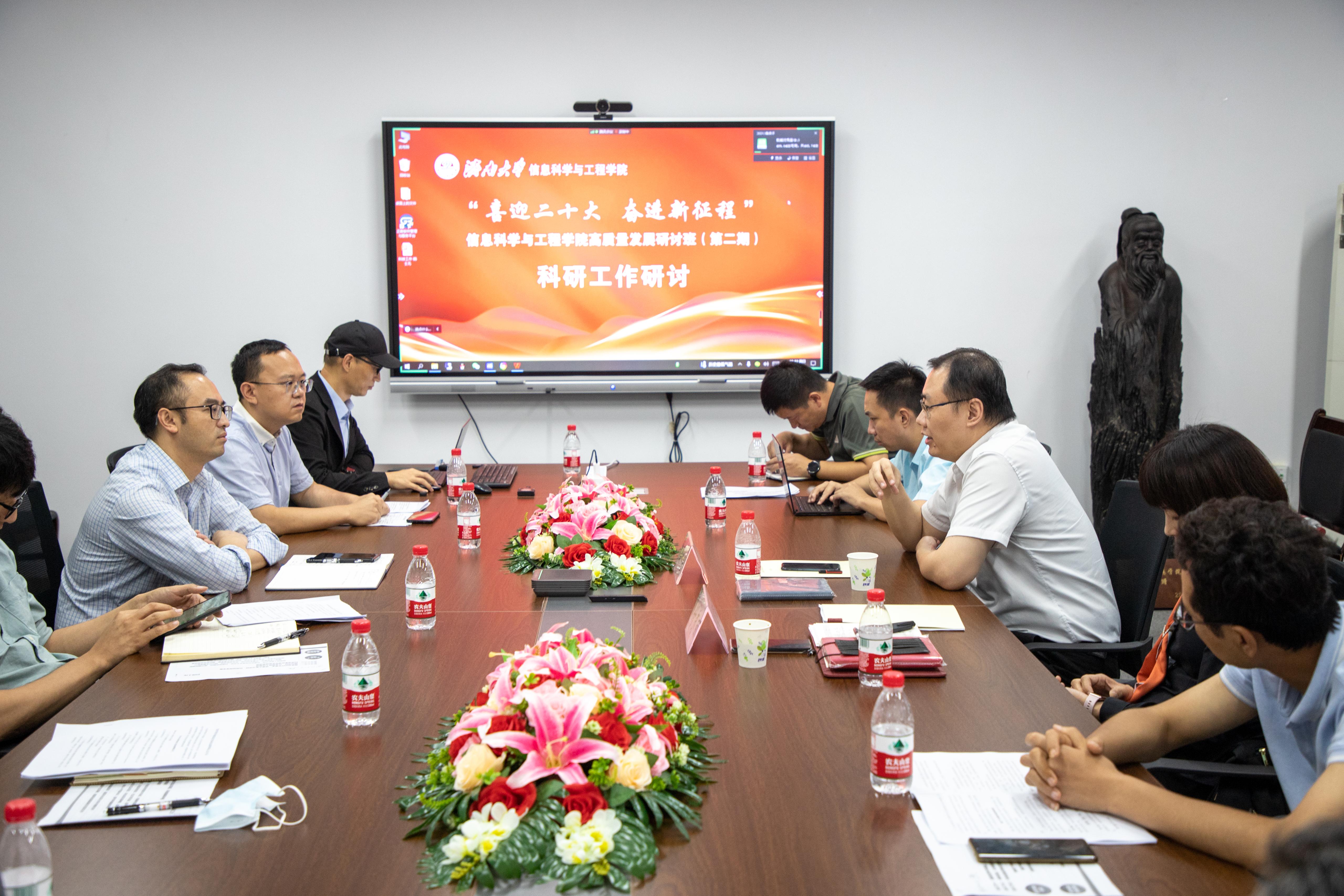 8月28日下午,在科研工作专题研讨中,黄加栋出席并讲话。他指出,学院要坚持“四个面向”,认真研究国家和地方发展规划和科研政策,以“有组织的科研”为指导思想加强科技工作统筹规划,并从重大、重点科技项目申报、标志性成果奖申报、科技成果转化和社会服务等方面提出期望。山东省计算中心(国家超级计算济南中心)创新团队负责人、山东山科数字经济研究院有限公司创始人、山东省经济和信息化发展研究院副院长周鸣乐工程师以“产教融合发展模式探索与实践”为题作专题报告;beat365vip官网登录入口机械工程学院副院长付秀丽教授以“‘有组织的’科研——以基金为起点,浅谈项目规划与团队建设”为题作专题报告。与会人员就科研项目申报、社会服务能力提升、标志性成果培育、科研团队建设等展开热烈研讨,在学院学科建设标志性科技成果等级认定、科技成果奖励培育等方面形成共识,并研讨制定了相关的制度文件。