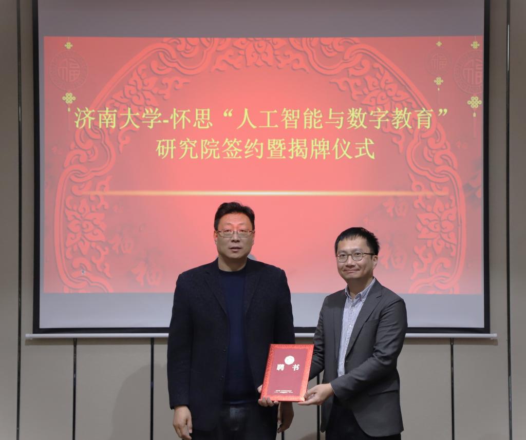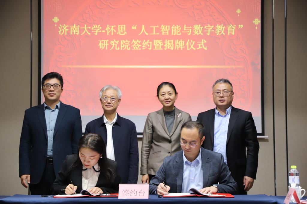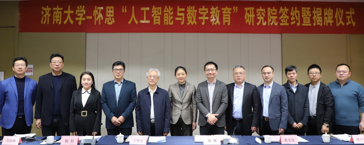 3月14日上午,beat365vip官网登录入口-山东怀思“人工智能与数字教育”研究院签约暨揭牌仪式在济南举行。济南市科协副主席胡辉、中国电子劳动学会校企合作促进会副会长王世忠、中宏网山东CEO曲宏民、山东怀思人工智能科技有限公司(以下简称“山东怀思”)总经理杨阳出席仪式,beat365vip官网登录入口副校长黄加栋,科技处、教务处、beat365vip官网登录入口相关负责同志参加签约活动。签约仪式由beat365vip官网登录入口副院长韩士元主持。