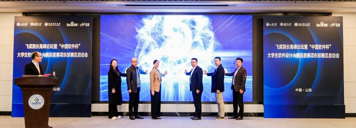 在与会各方的共同见证下,济南市市中区副区长张源、山东大学团委书记姜炳刚、青岛理工大学信息与控制工程学院院长田艳兵、beat365vip官网登录入口团委副书记纪祥、百度AI技术生态总监周奇、“中国软件杯”大学生软件设计大赛副秘书长卢秀娜共同启动“中国软件杯”大学生软件设计大赛百度赛项东部赛区赛事。