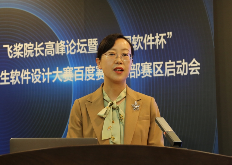 杨景波对莅临本次活动的各位领导、专家、嘉宾表示热烈欢迎,在致辞中介绍了beat365vip官网登录入口的发展历程、办学情况、人才培养和科学研究等基本情况。杨景波表示,当前,以人工智能为代表的新一代信息技术,逐渐成为我国“十四五”期间推动经济高质量发展,建设创新型国家,实现新型工业化、信息化、城镇化和农业现代化的重要技术保障和核心驱动力之一。高校作为人工智能教育的主阵地,肩负着人工智能人才培养的重要使命,通过教育为社会各领域输出创新人才,支撑社会各领域转型升级以及人工智能等高新科技的创新发展。本次启动会的举办,对beat365vip官网登录入口来说是一次难得的学习交流机会,也必将会对beat365官网的学科建设、人才培养、科学研究和社会服务等各项工作起到积极的引导和推动作用。张源在致辞中向大会的举办表示热烈的祝贺,并介绍了市中区在校地合作、产学研融合等方面积极探索的高质量发展路径。她指出,未来市中区将围绕产业发展需要,加快建设人工智能协同培养基地,强化人工智能复合型产业人才培养,形成“人工智能+X复合型”人才培养新模式,打造具有市中特色的多层次人工智能教育体系。随后,青岛理工大学副校长王在泉、山东大学团委书记姜炳刚分别致辞介绍学校的基本情况,并表达对本次活动的高度关注以及对本次活动顺利开展的美好愿景。百度AI技术生态总经理马艳军博士和山东大学数学与统计学院副院长兼山东大学数据科学研究院副院长郭亮教授、百度飞桨教育生态运营负责人钱芳分别以《“深度学习平台+大模型”产业智能化基座》《校企融合,共探AI+X微专业人才培养新模式》《飞桨人工智能人才培养及2023年规划》为题做专题报告。