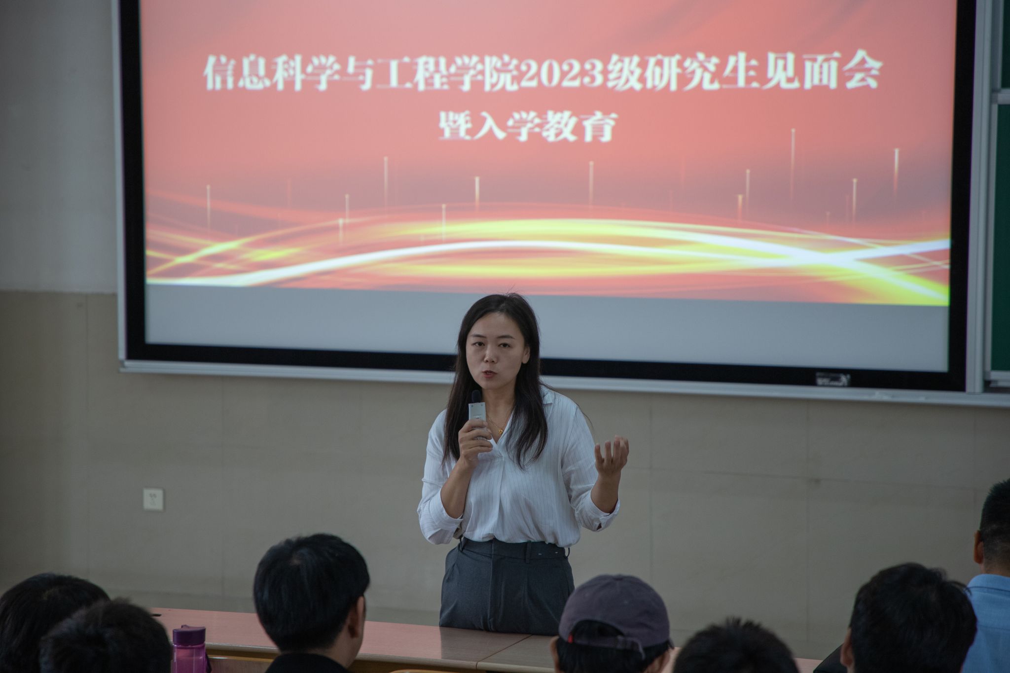 9月26日上午,beat365vip官网登录入口2023级研究生新生见面会暨入学教育在11教6302举行。学院党委书记夏卫东、副院长荆山、副院长杨晓晖、教师代表以及全体2023级研究生参加本次见面会。会议由学办主任付颖颖主持。