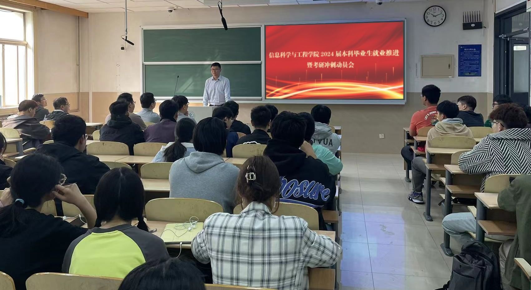 为推动beat365官网本科毕业生社会就业及考研升学指导工作开展,10月25日上午,beat365vip官网登录入口2024届本科毕业生就业推进暨考研冲刺动员会于第十教学楼顺利召开。学院党委副书记、副院长郝伟,副院长杨晓晖,各系系主任,部分研究生导师及相关学工人员出席本次会议,2024届200余名本科毕业生代表参加会议。会议邀请山东大学李阳教授,学院集成电路系系主任张春伟副教授,计算机系牛四杰教授、夏英杰老师和王琳教授课题组在读博士宁帅作指导交流。动员会由2020级辅导员孟莹主持。