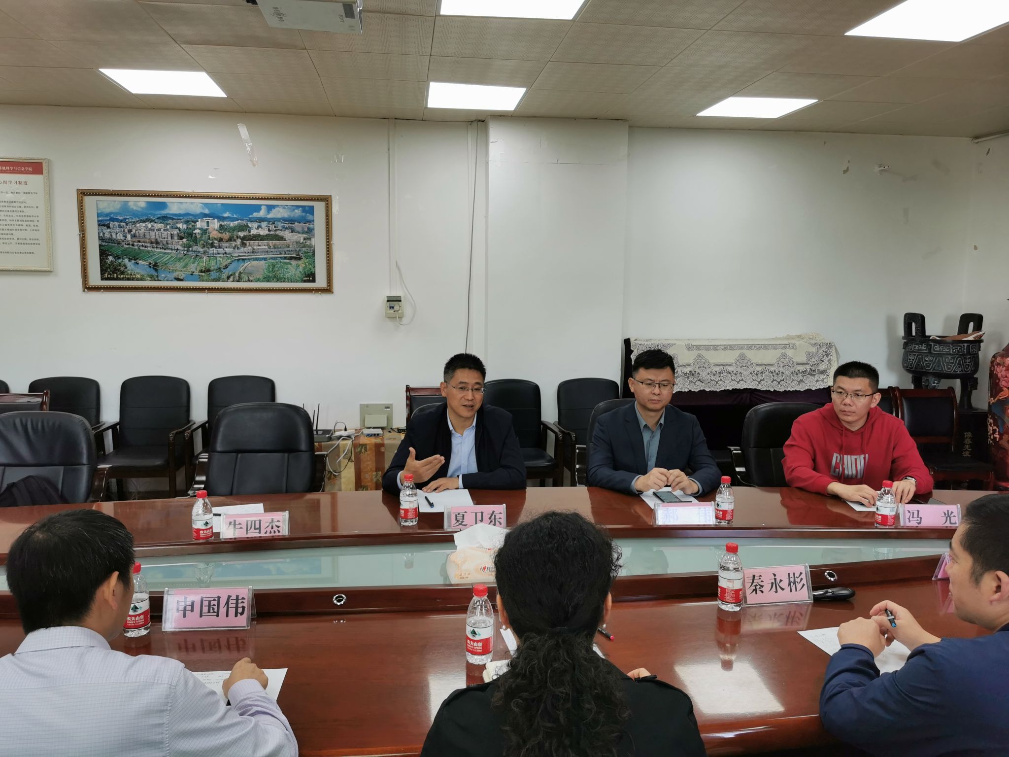夏卫东对贵州大学计算机科学与技术学院的热情接待和经验分享表示感谢,并介绍了学院发展建设情况。他表示,下一步,学院将积极学习和借鉴对方在学科建设、科学研究、人才培养等方面的先进经验与做法,并希望以此次座谈交流为契机,进一步拓宽双方的交流领域和交流层面,实现优势互补和各项事业的共同发展。