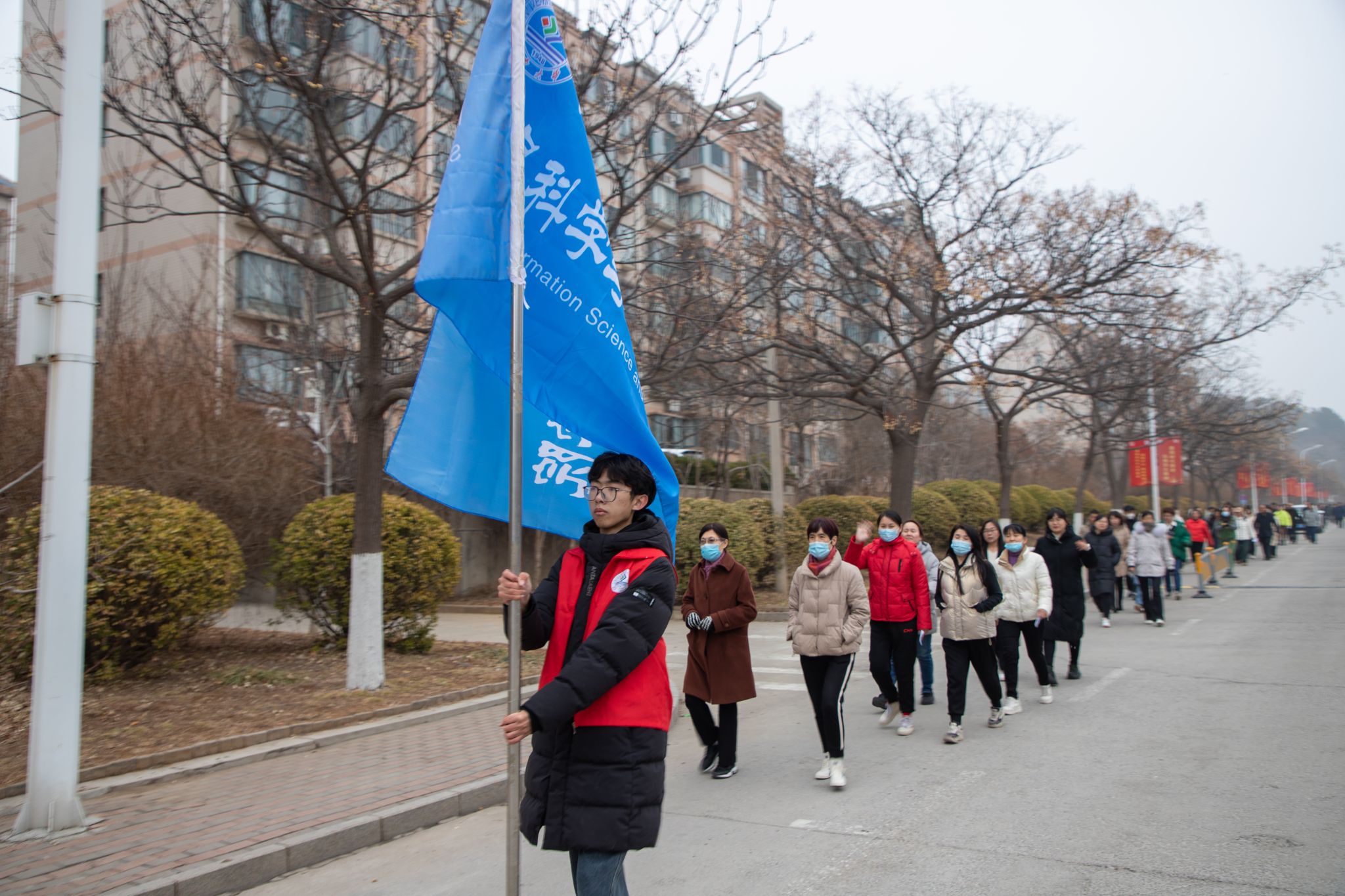 寒风凛冽也挡不住大家的热情,一路上教职工们个个英姿飒爽,充满豪情地健步行走在小雨过后的校园里,一边欣赏校园美景,一边尽情享受运动带来的愉悦,同时还相互鼓励加油,一路上欢声笑语不断。