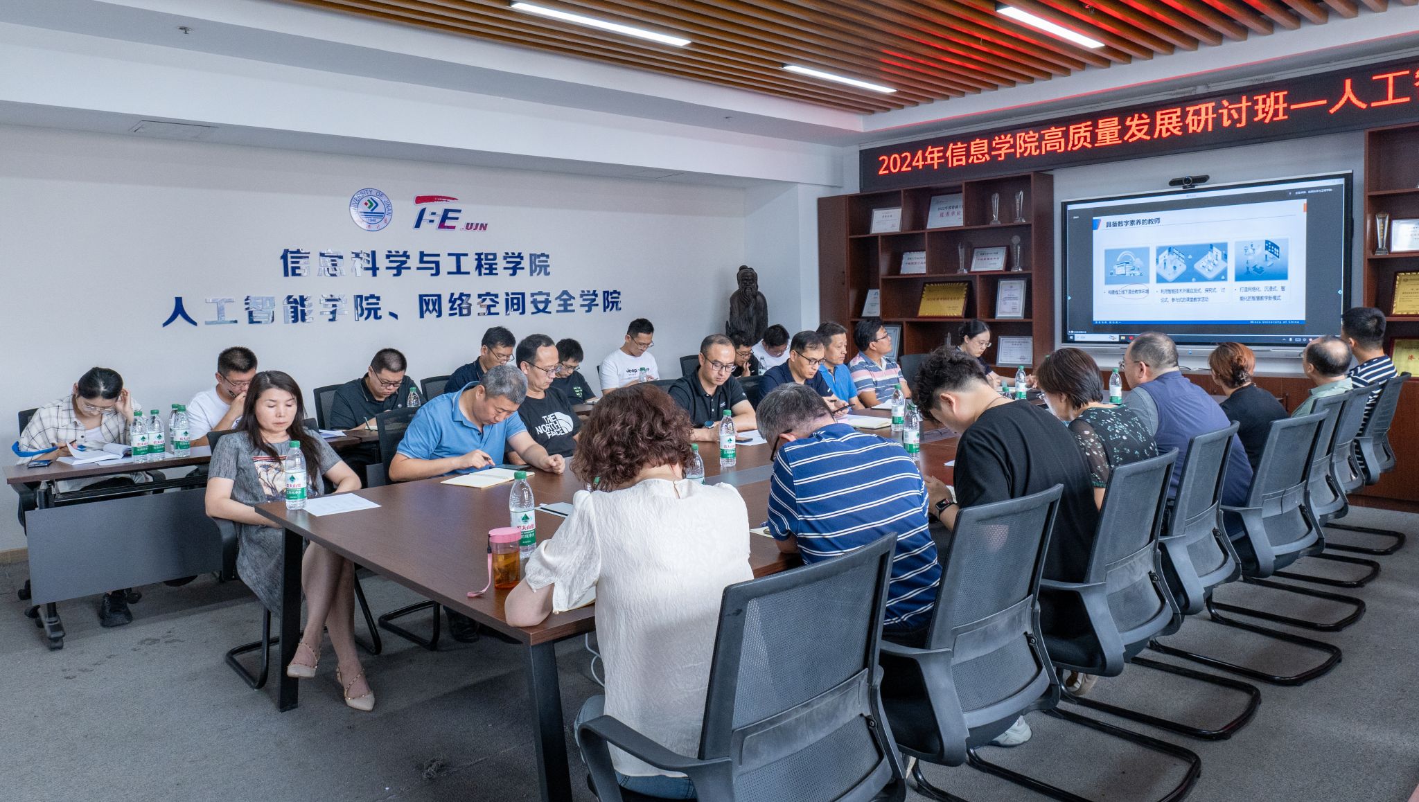 为全面推进落实《beat365vip官网登录入口本科数字教育行动方案》,积极推动人工智能技术与高等教育教学融合发展,8月27日下午,beat365vip官网登录入口举行高质量发展研讨班人工智能赋能课程建设专题研讨活动。会议邀请了中央民族大学林旺教授和安徽大学赵姝教授作专题报告并组织学院专任教师围绕“数智时代教师如何站好三尺讲台”进行专题研讨。会议采用线上线下相结合的方式并面向全校教师线上开放,学院领导班子、教务处相关老师、学院省级以上课程负责人、学院首批“人工智能交叉”本科课程负责人及部分新进教师线下参加了会议。会议由学院副院长荆山主持。