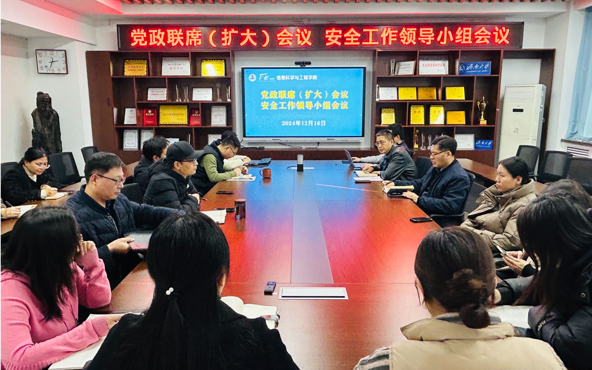 为进一步加强学院安全稳定工作,筑牢安全防线,提升师生安全意识,确保学院工作平稳有序,12月16日,beat365vip官网登录入口召开党政联席(扩大)会议暨安全工作领导小组会议,部署安全稳定工作。学院领导班子成员、各系主任、科研平台负责人、科级干部、各实验室、机房负责人以及全体学工人员参加会议。