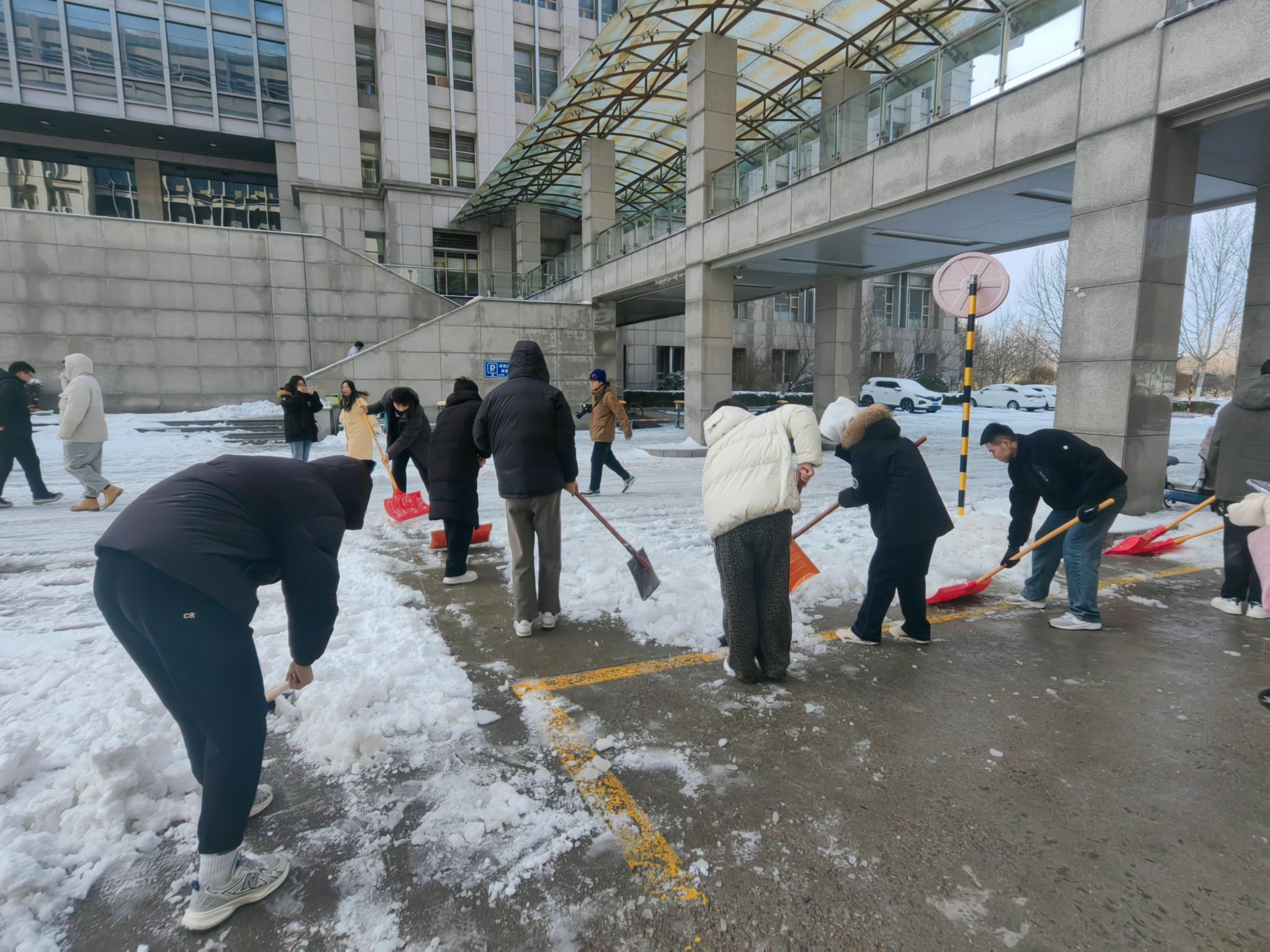 3月3日清晨,学院师生党员不畏严寒,携带好扫帚、铁锹等清扫工具,分批次到学院卫生责任区域开展扫雪除冰活动。大家头顶寒风却干劲十足,从学院主干道到12教学楼两侧,再到图书馆周边,齐心协力,配合默契,经过两个多小时的奋战,学院周边主干道路的积雪被清扫干净,学院师生党员用热情与汗水开辟出了一条安全方便的“暖心路”,用实际行动为为校园筑起了一道坚实的“安全屏障”。