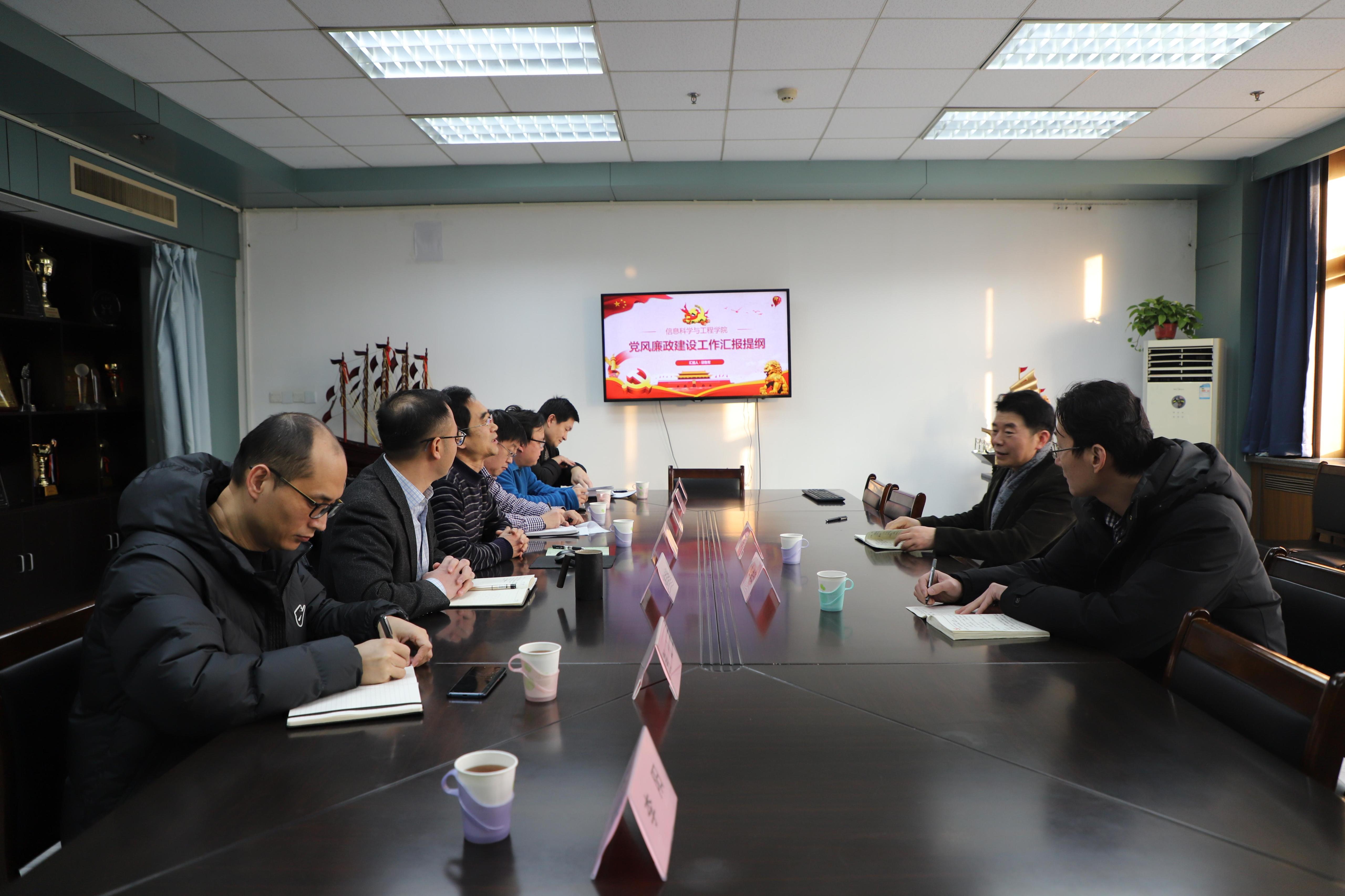 会上,学院党委书记邱鲁军从学院基本情况、党风廉政建设主要工作情况等方面进行了介绍,分析了当前存在的问题及困难,并对学院今后党风廉政工作思路进行了汇报。院长陈贞翔分别从学院概况、专业建设、研究生教育与科学研究、学科建设、国际合作与交流、学生工作等方面进行了介绍,并就学院下一步重点工作做了汇报。学院班子其他成员就各自分管工作做了简要汇报。