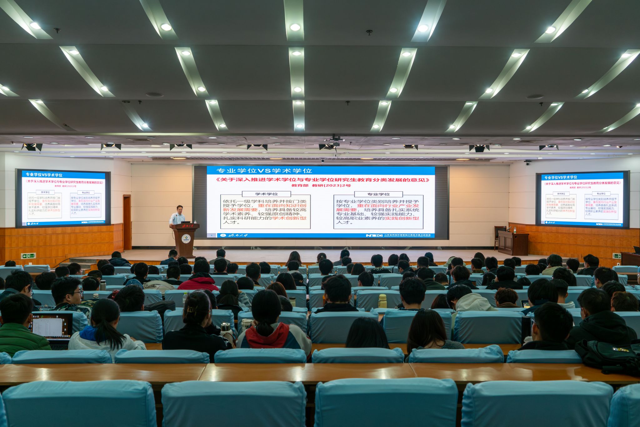 副院长牛四杰向新生重点讲述了学院学位授予创新成果审核标准和审核程序,强调了博士研究生、学术学位硕士研究生和专业学位硕士研究生的学位授予创新成果要求,勉励大家立足实践、实事求是,自觉遵守科研规范、严守道德准则,努力成长为有格局、有担当的卓越人才。