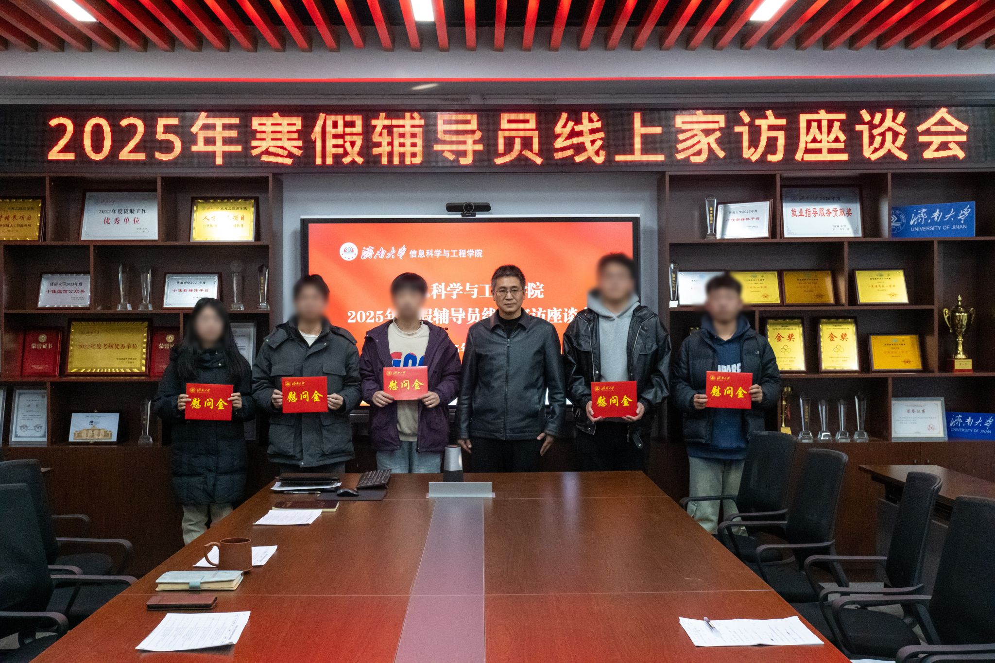 座谈会最后,学院领导老师为学生代表送上了寒假返乡路费补助,并表达了对他们未来的祝福与期盼。
