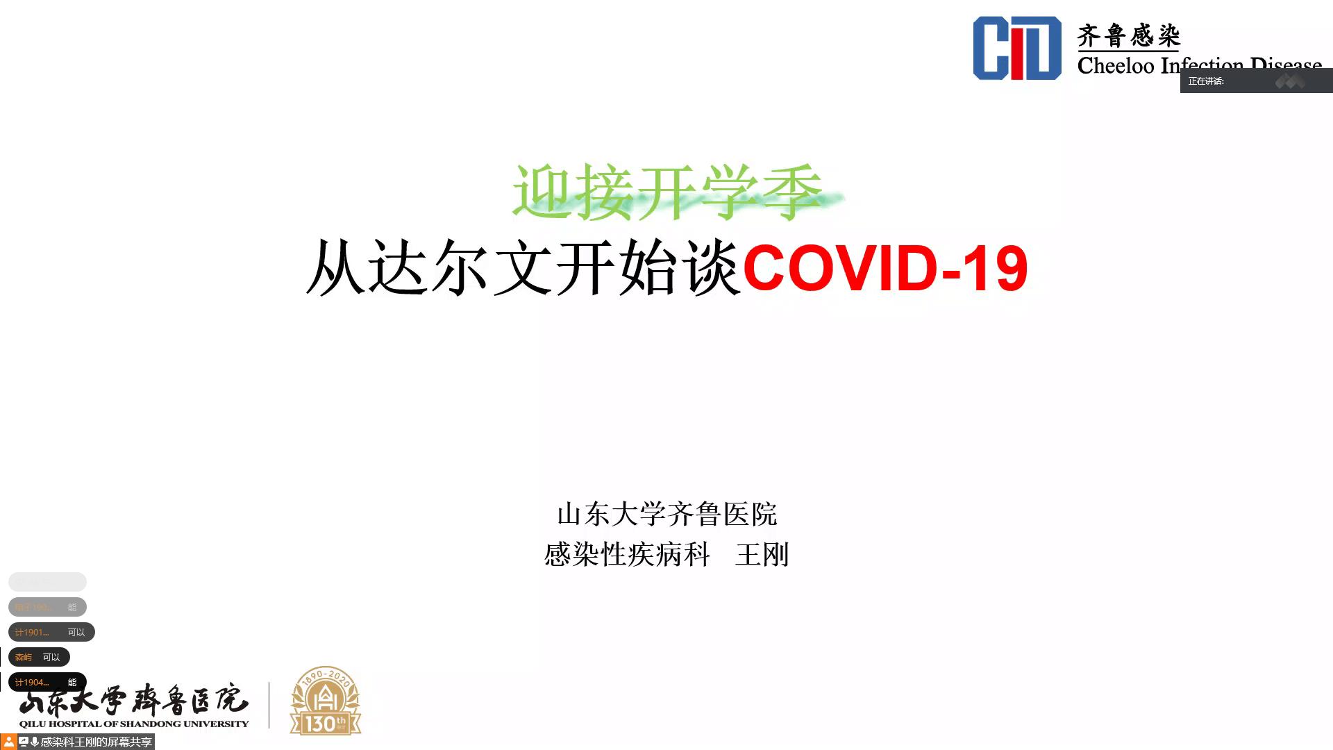 为进一步加强学生对新冠肺炎疫情的认识,做好科学防护,有效切断病毒传播途径,切实保障学院学生身体健康,8月13日晚,beat365vip官网登录入口邀请山东大学齐鲁医院感染科主任医师王刚通过腾讯会议为学院学生开展新型冠状病毒肺炎疫情防控知识讲座。
