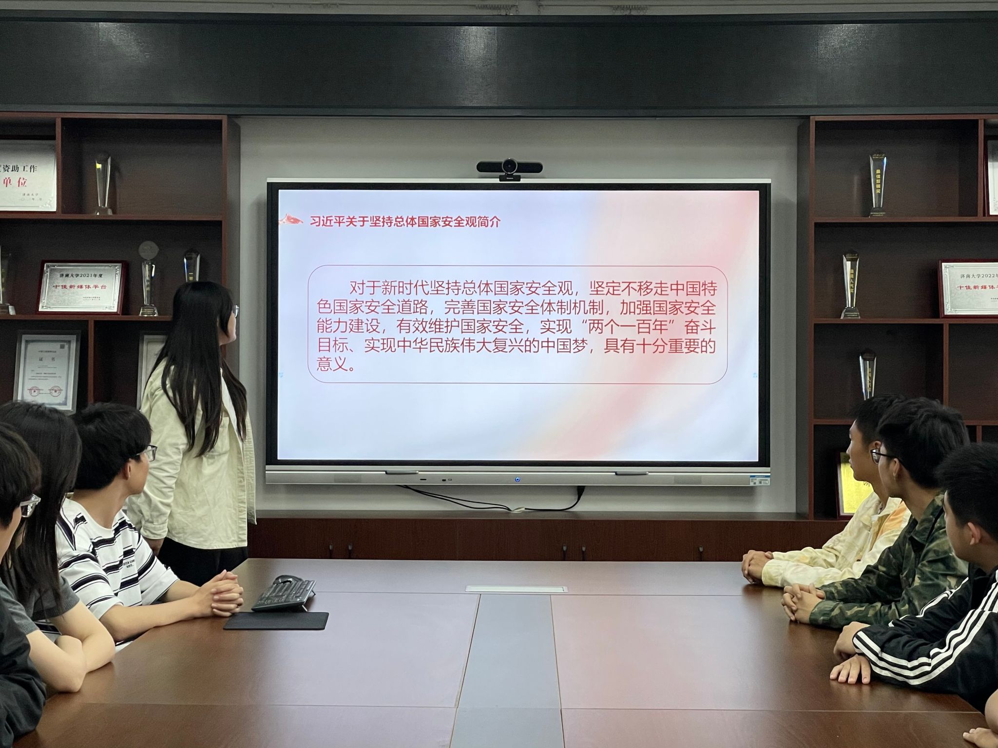 为引导广大团员和青年学习了解习近平总书记关于总体国家安全观的重要论述,深刻理解总体国家安全观是维护我国国家安全的根本遵循,各团支部组织开展“学解析,践行动”主题班会,教育引导广大团员和青年深刻认识我国国家安全形势面临的机遇和挑战,增强忧患意识、树立底线思维,准备经受风高浪急甚至惊涛骇浪的重大考验。