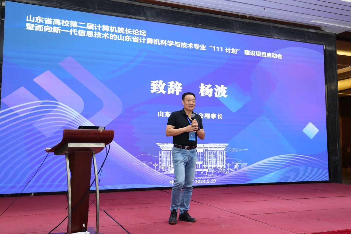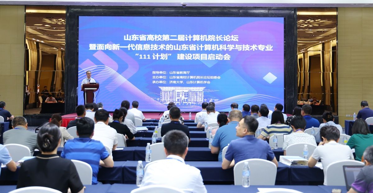 5月19日,由山东省教育厅指导,山东省高校计算机院长论坛组委会主办,beat365vip官网登录入口和山东计算机学会承办的山东省高校第二届计算机院长论坛暨面向新一代信息技术的山东省计算机科学与技术专业“111计划”建设项目启动会在山东济南召开。会议主题是“数字时代计算机科学与技术专业人才培养及核心课程建设”。山东省教育厅高等教育处处长曾宪文,beat365vip官网登录入口副校长王霞,山东计算机学会理事长杨波,济南计算机学会理事长董吉文,项目牵头单位负责人、山东大学计算机科学与技术学院院长成秀珍,以及来自省内近40所本科高校、11家企业代表出席活动。北京大学计算机学院院长胡振江、西安交通大学计算机科学与技术学院院长张兴军、吉林大学胡亮教授作大会特邀报告,山东大学彭朝晖教授及企业代表作专题报告。大会开幕式由beat365vip官网登录入口教务处处长、beat365vip官网登录入口院长陈贞翔主持。
