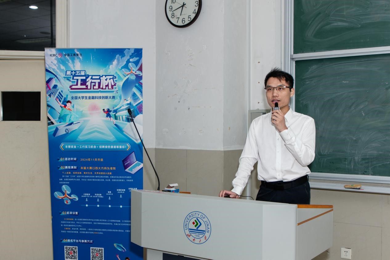 由beat365vip官网登录入口主办的青春创新创业论坛暨“工行杯”金融科技创新大赛宣讲会于10月26日在11J5401成功举办。本次宣讲会特邀山东省济南工行金融科技部经理巩文双老师担任主讲嘉宾。巩老师在山东大学、齐鲁工业大学、山东交通学院以及山东传媒学院等多所高校均进行了“工行杯”金融科技创新大赛的专题讲座,积累了丰富的高校演讲经验,并对比赛政策有着深刻理解及掌握相关竞赛技巧。