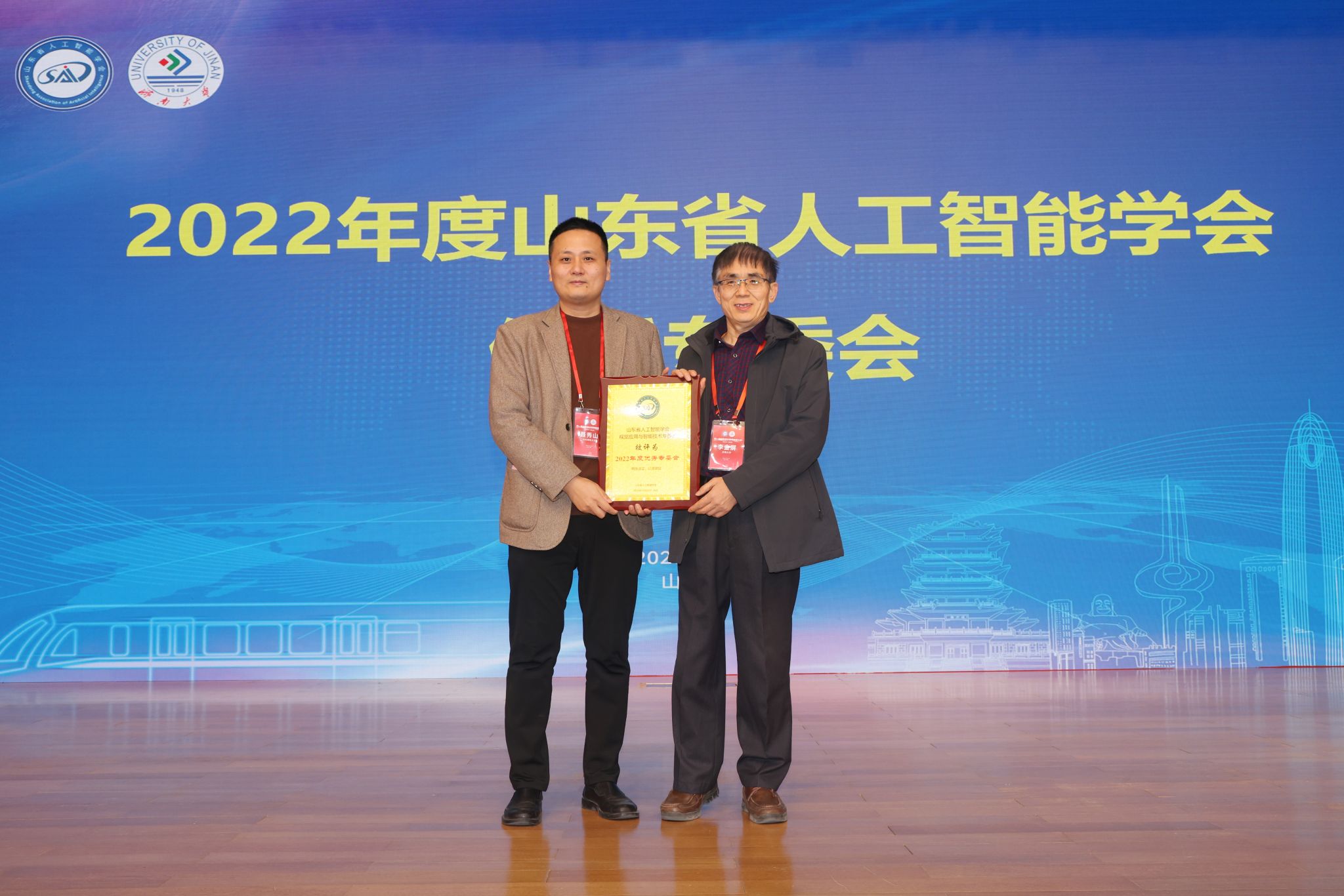 大会报告期间还进行了多项颁奖活动。beat365官网beat365vip官网登录入口教授、视觉应用与智能技术专委会主任李金屏领取了2022年度山东省人工智能学会优秀专委会奖牌。此外,活动还为山东省计算机视觉最佳和优秀论文奖、山东省视觉创新与应用领航和先进单位颁发了证书与奖牌。
