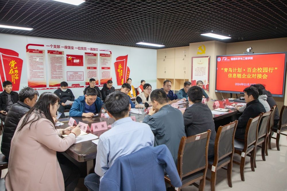 为共同探讨解决行业发展难题,推动校企信息精准对接,促进产学研深度融合和科技成果转化,“青鸟计划·百企校园行”信息链校企合作对接会于下午2点分别在第十二教学楼704和709会议室举行。本次会议邀请了13家知名企业相关负责人进行洽谈交流,学院40余位科研骨干教师参会。会议分别由学院副院长荆山、杨晓晖主持。